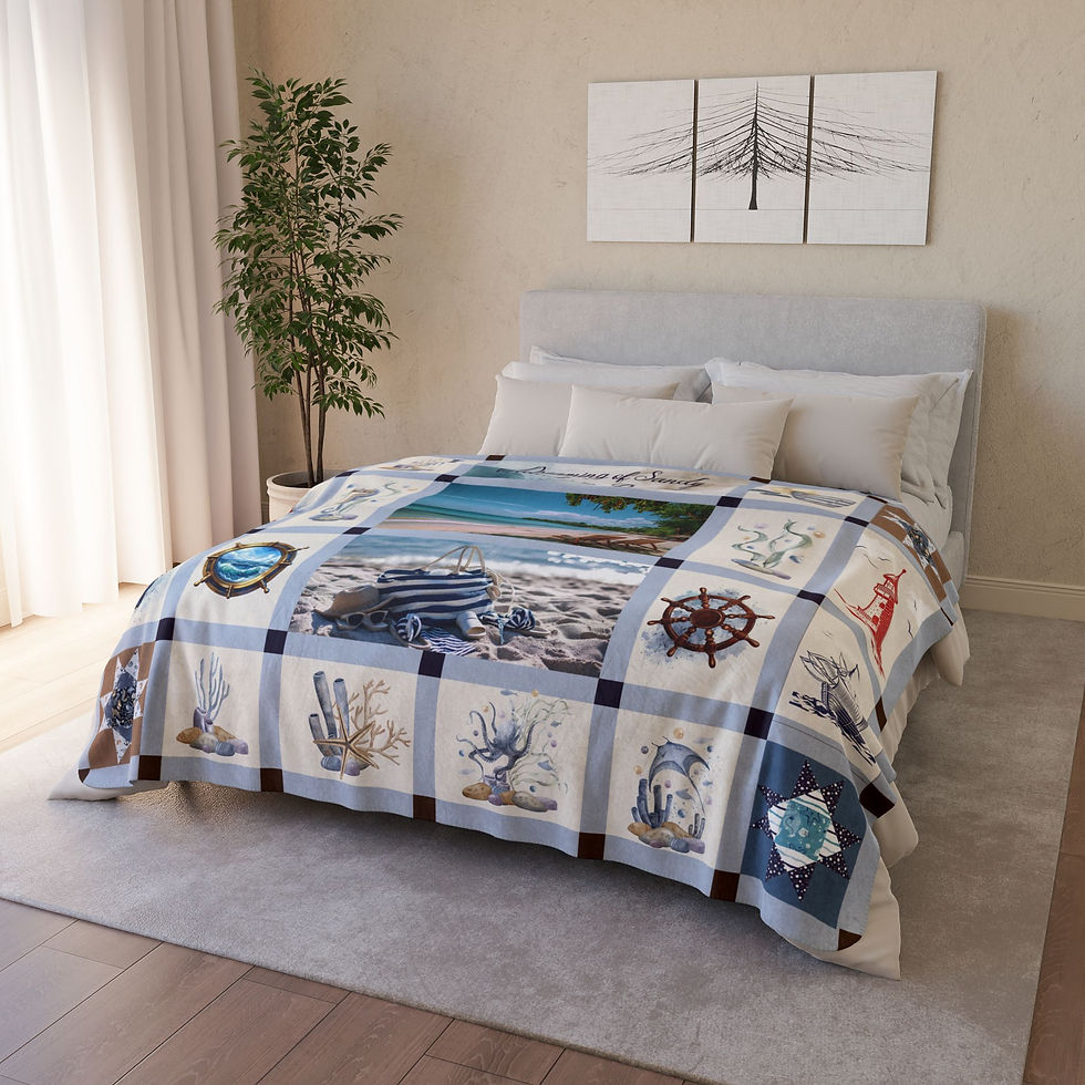Coastal Serenity Minky Blanket | Beach-Themed Throw for Cozy Nights